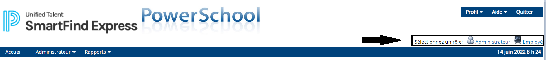 Si vous avez plusieurs rôles dans SmartFind Express, vous avez la possibilité de basculer entre les rôles.