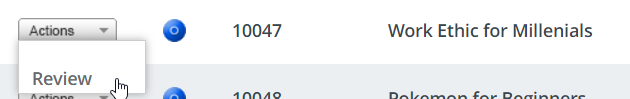 - Locate the course you wish to review and click on the Actions menu.