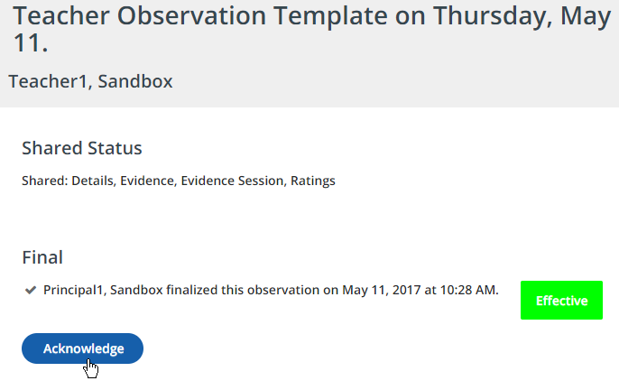 - Once you have reviewed the observation, click Acknowledge.