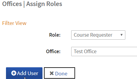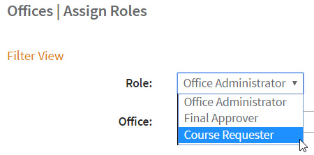 - Course Requester - User can create and manage courses for this office. (Only applicable when course approval workflow is required.)