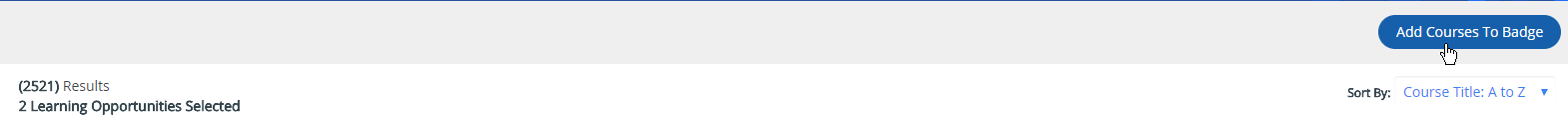 - Add Courses - Automatic badges must have a series of courses associated to them. The completion of these courses triggers the automated awarding of the badge. (Manual badges can have courses associated to them, but it is not required.)