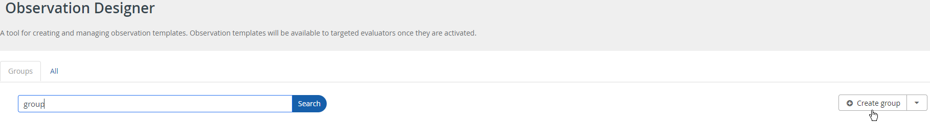 Groups are a means of organizing observation templates. (For example, templates might be grouped as Formal Observations and Informal Observations.) Each observation template must be created within a group.