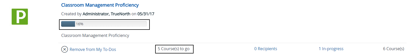 - Once all activities reach a completed status, the badge will automatically be awarded and will be listed under the Completed tab of the Library.