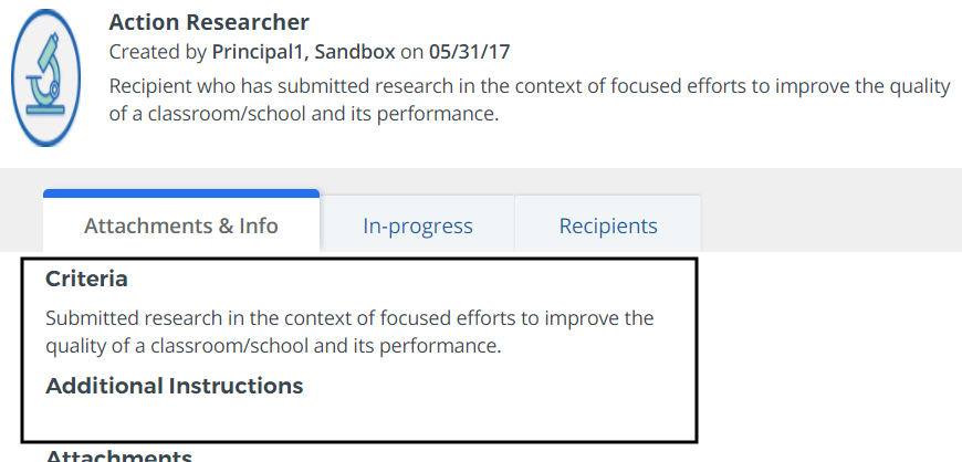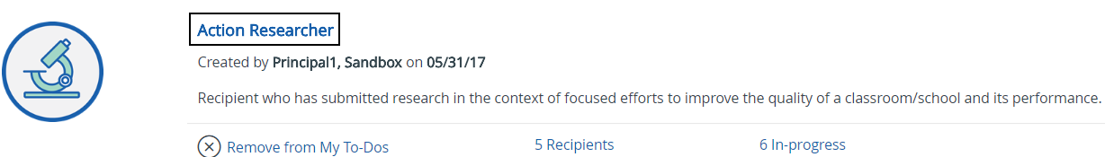 Once a badge has been added to your to-do list, you will need to complete the required criteria to earn the award.