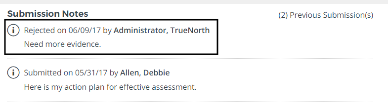 - Review the submission notes for the rejection comments.