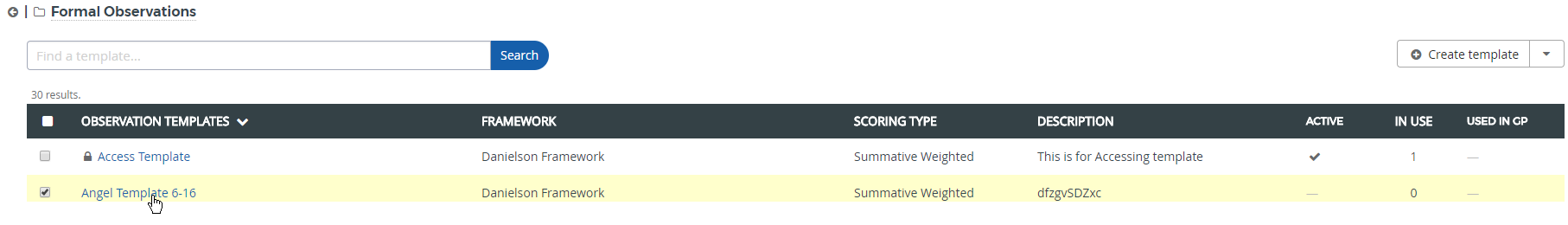 *If the template has been selected for an observation, see Scoring Updates With Live Instances.*