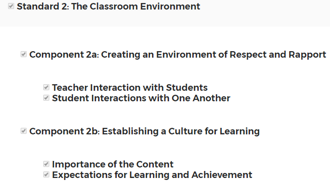 Use the checkboxes to show or hide certain parts of the framework for this observation template. When framework customizations are complete, click Next.