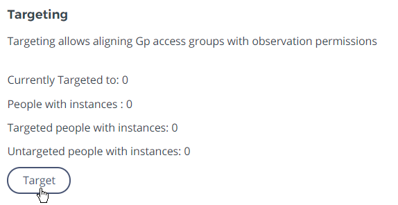 - A targeting summary will display. Click Target to add users.