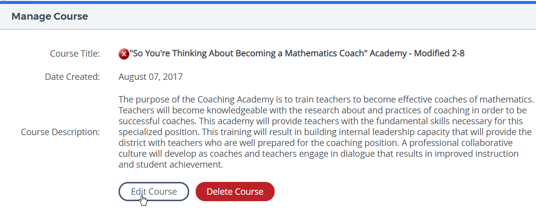 - If the course information or settings were denied, the Edit Course button will be enabled. Click to make necessary updates.
