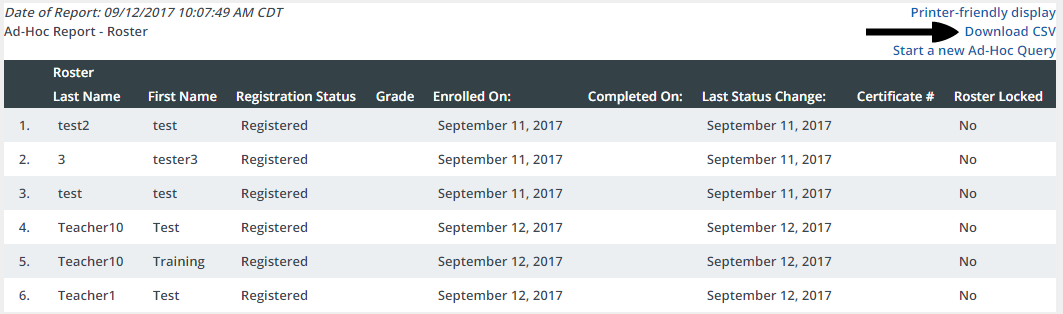 - From the buttons displayed on the Section Roster screen, click Export.