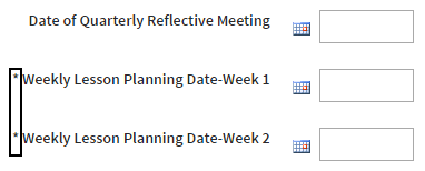 - Required fields are denoted with an asterisk. While the form can be saved without it, the activity cannot be marked complete.