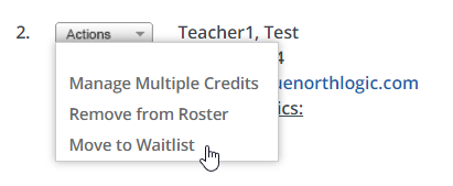 - Participants you registered from the waitlist now will appear in the roster list. To return a participant to the waitlist, select Move to Waitlist from the applicable Actions menu.