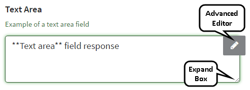 - Text box provides options to expand the response field and open an advanced text editor with formatting options.