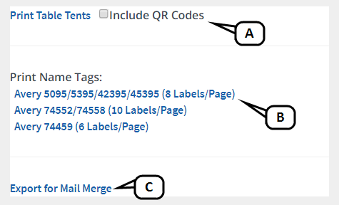 Print name tags or table tents (with optional QR code for use with the mobile app).