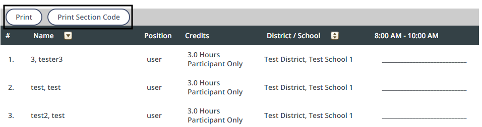Print the section roster sign-in sheet for a class (with optional QR code for use with the mobile app).