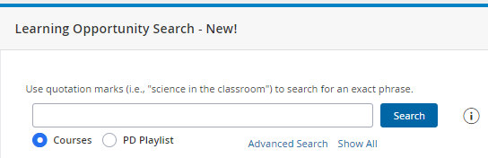 - Search for a course using any of the search tools. See Search for Courses for more details.