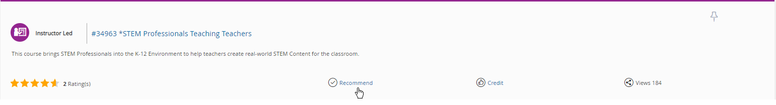 - From the list that displays, locate the course you wish to recommend, then click Recommend.