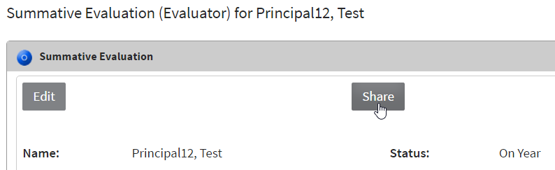 - Once the evaluation is ready to be viewed by the Evaluatee, click Share at the top of the activity page.