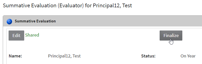 - Once no more changes will be made to the evaluation, click Finalize at the top of the activity page.