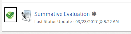 - You will be returned to the evaluation plan page. The activity will be denoted as complete with a green check icon.