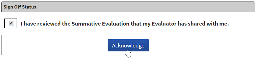 - Finally, sign off on the summative evaluation by clicking Acknowledge at the bottom of the activity page.