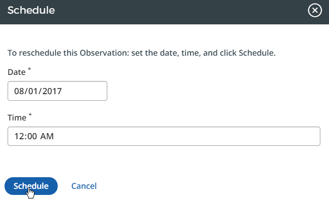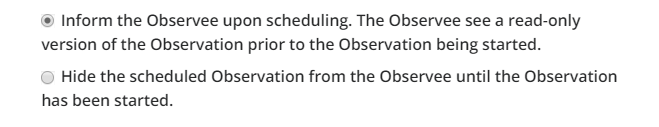 - Select a radio button to determine if the Observee will be informed of the scheduled observation.