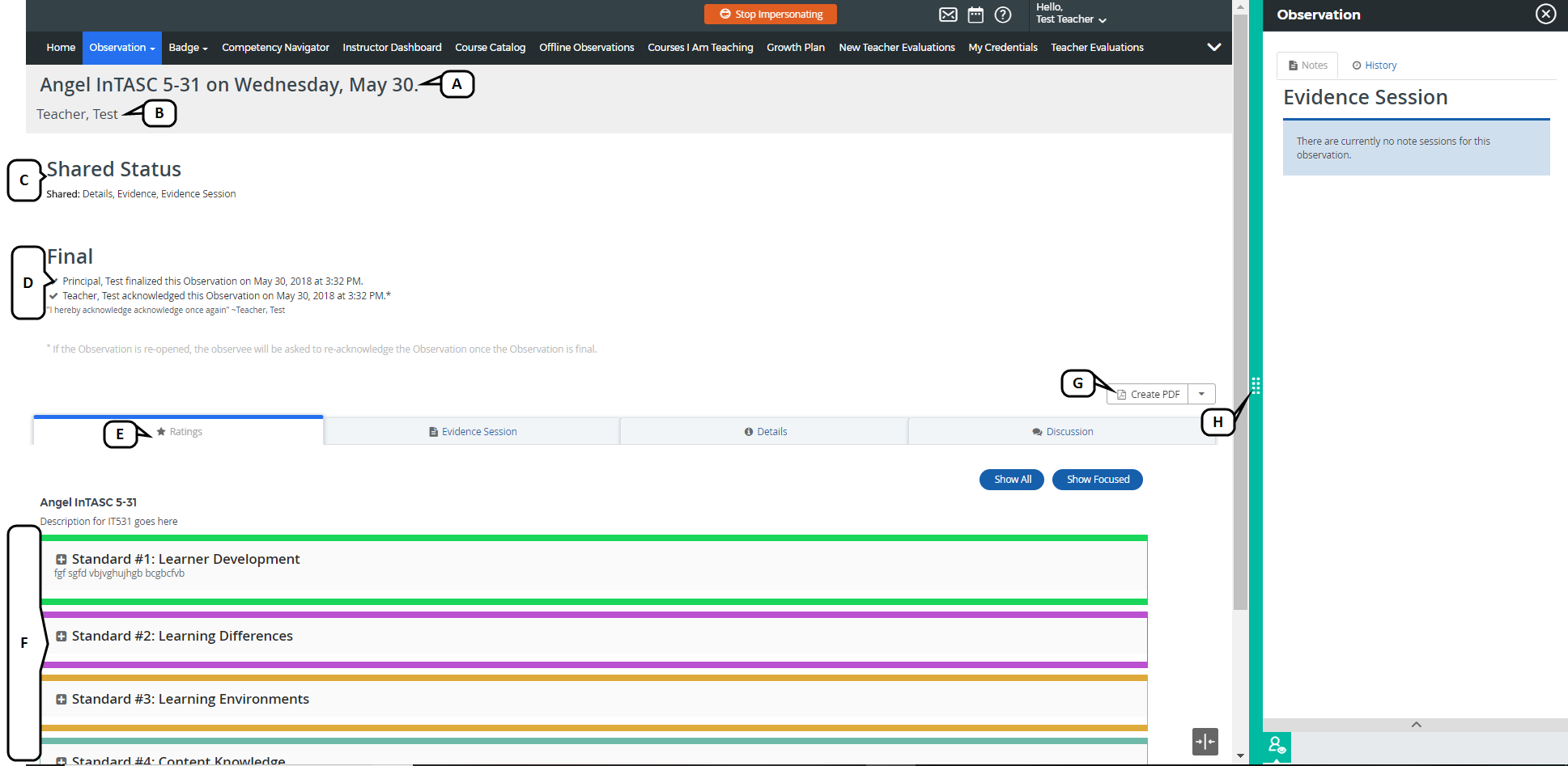 - Acknowledge the observation and view the sign-off status once the Observer has finalized the observation.