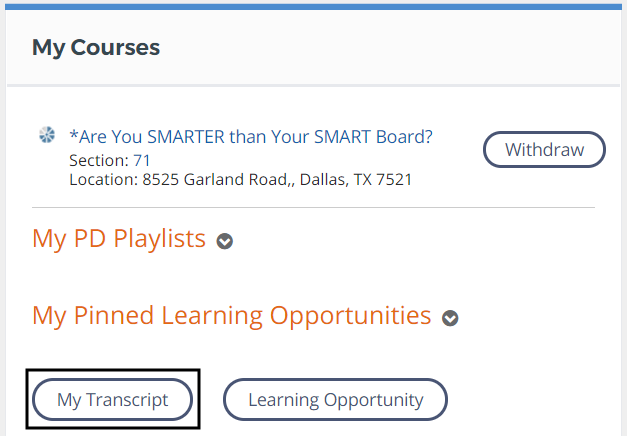 3. Click on My Transcript.