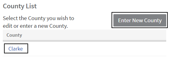 The current choices will be listed. Click on a county name to edit it or click Enter New County to add a new one.