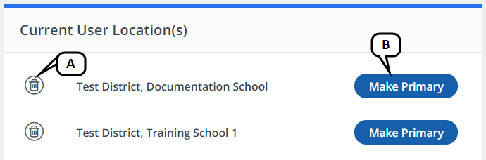 All associated locations will be listed. To remove a location, click the trash can icon.