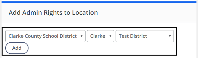 Use the drop-down menus to select the location for the admin. Then click Add.
