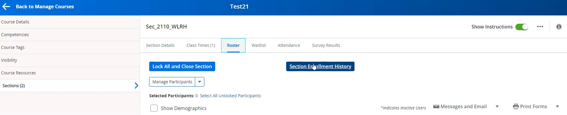 Professional Learning | Added New Feature to Manage Participants Dropdown | A new feature, “Move selected learners to another section” has been added to the “Manage Participants” dropdown on the section roster management screen to move learners among different sections of the same course.