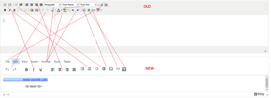 Professional Learning | Updated Rich Text Editor User Interface | The rich text editor in Professional Learning now has been updated to a new version. We still support almost all of the same editing functionalities. Reference this diagram for the new location of different editing options. ![]() |
