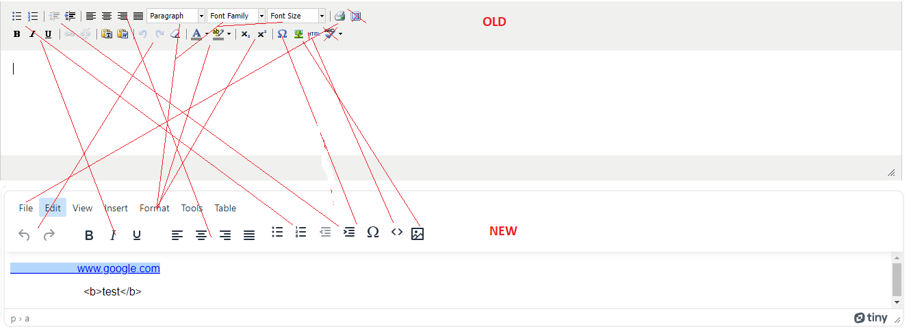 Professional Learning | Updated Rich Text Editor User Interface | The rich text editor in Professional Learning now has been updated to a new version. We still support almost all of the same editing functionalities. Reference this diagram for the new location of different editing options. ![]() |