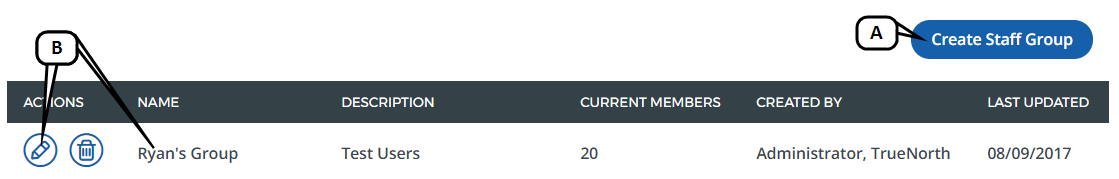 To edit an existing staff group, click the pencil icon or the group name for the desired group.